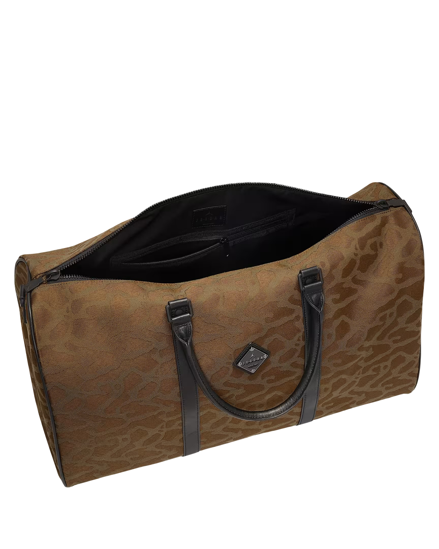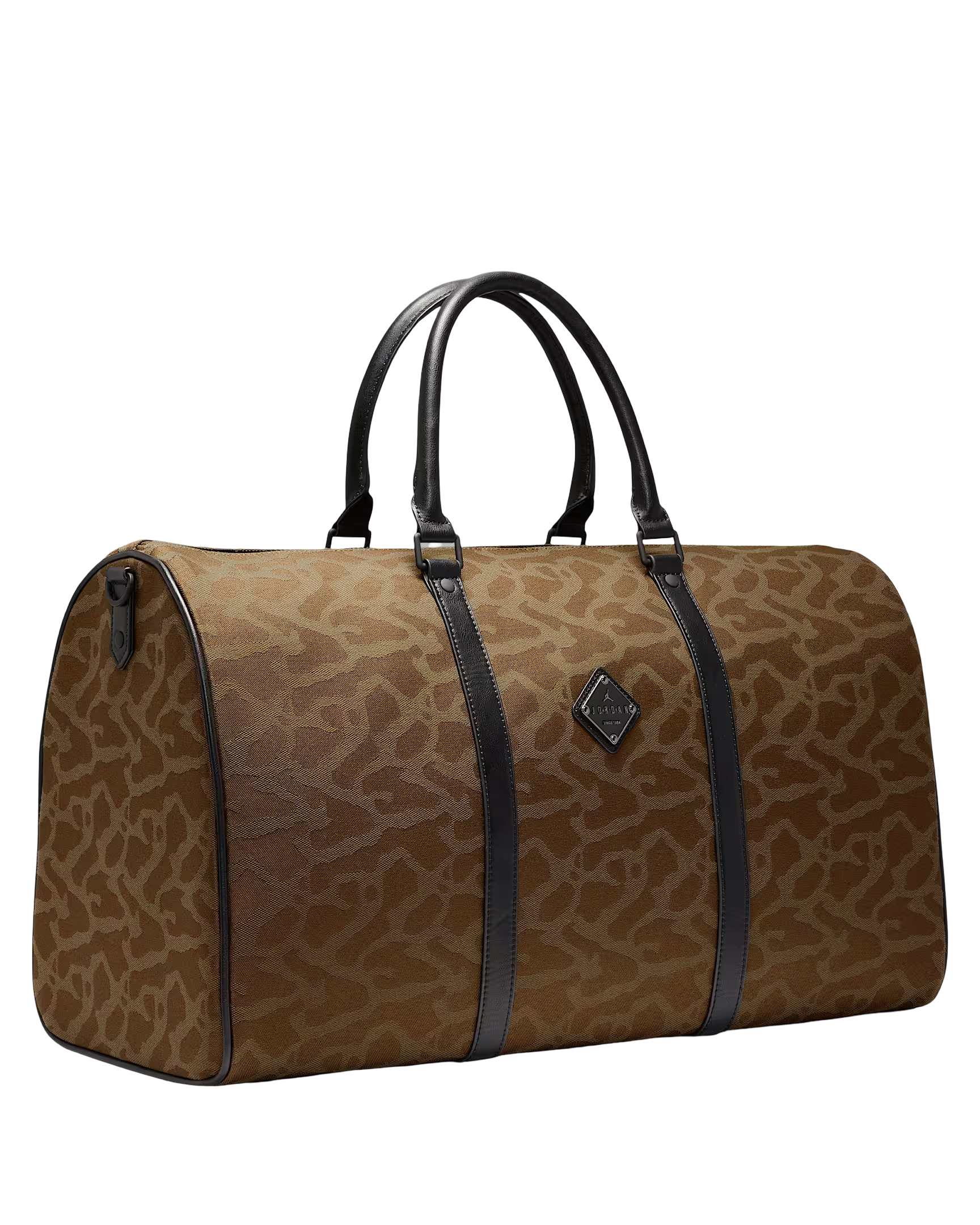 Move like an icon with this duffle, crafted from tough fabric and detailed with a woven elephant skin pattern that pairs perfectly with your Jordans. The roomy main compartment fits everything you need—whether for the gym, an overnight stay, or your daily essentials. Faux leather handles and trim add a premium touch, while the adjustable, removable shoulder strap gives you flexible carrying options.